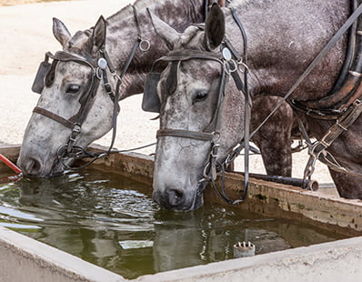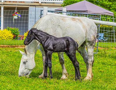 Percherons generally stand between 16.2 and 17.3 hands (66 to 71 inches, 168 to 180 cm) high, although the breed has an outer range of 15 and 19 hands (60 to 76 inches, 152 to 193 cm). They average around 1,900 pounds (860 kg), although the top weight is around 2,600 pounds (1,200 kg). They are generally gray or black in coloring, although the American registry also allows the registry of roan, bay and chestnut horses. The British registry only allows horses of gray or black to be registered.[2] Many horses have white markings on their heads and legs, but registries consider excessive white to be undesirable. The head has a straight profile, with a broad forehead, large eyes and small ears that reflect the breed's Arabian ancestry. The chest is deep and wide and the croup long and level. The feet and legs are clean and well muscled. They are described as proud and alert, and intelligent, willing workers. They are considered to be easy keepers and easy to work with and train. The breed adapts well to many different conditions and climates.